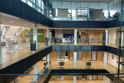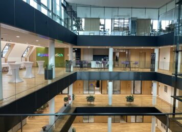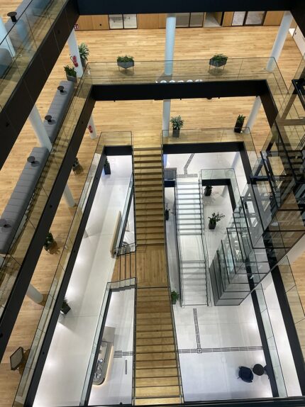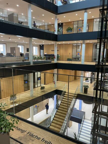 The lively oak design gives the spacious areas a dynamic yet warm atmosphere, while the brushed surface highlights the wood’s natural structure. The ProVital finish ensures a durable, easy-to-maintain, and sustainable surface – ideal for high-traffic environments such as modern banking and service areas.