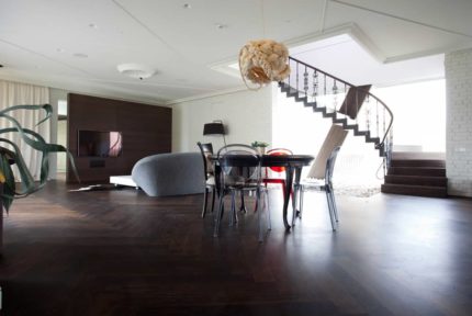 Centuries ago, the classic herringbone pattern was used in castles. What worked there is also a great addition to your own home. Suddenly, imperial charm enters and combines with modern furnishings to create a true design marvel. The shade of smoked oak adds elegance. The flooring is still wonderfully simple in maintenance: maintenance-free flooring requires no special care. A gentle cleaning is all it takes!